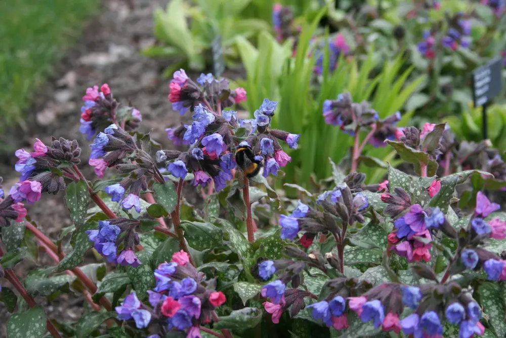 Broket lungeurt er fin å beite på for bier og humler tidlig i sesongen. Navnet kommer av de lyse flekkene på bladene. Foto: Mari Marstein/MiA
