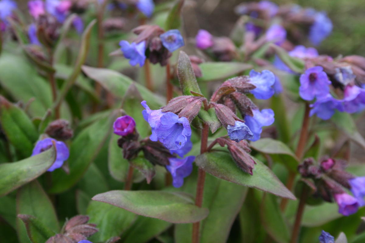 Den andre kommer fra en hage på Årnes. Den har intenst blå blomster, mens bladene er mørk grønne med rødlige kanter. Dette er trolig en kultivar der flere arter er innblandet. Det nærmeste jeg kommer er Pulmonaria angustifolia. «Mor var veldig tidlig ute med å samle inn planter,» fortalte hun som ga den til museet. «De fikk mye planter fra naboen over vegen. Det var sånne vanlige planter. Far var flinkest som gartner. Det var ikke det at han var så interessert i slag og sånn, men han ville holde det pent og få det til å gro. Han holdt det voldsomt i orden, og det nytte itte å hjelpe’n, for det vart itte bra nok!»