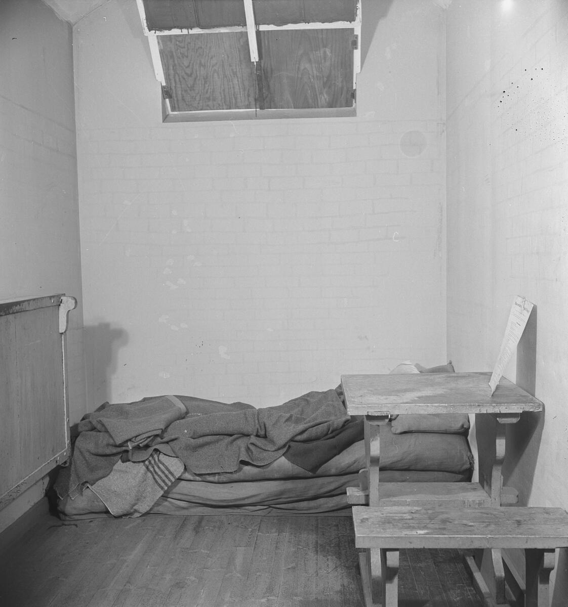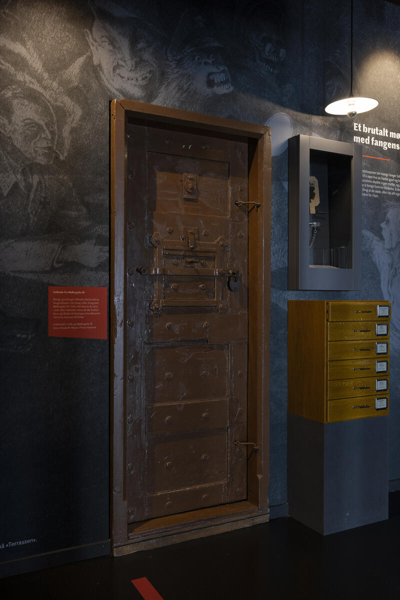 Many Grini prisoners spent the first part of their imprisonment in a cramped cell in the prison in Møllergata 19 in Oslo. Here they could sit for weeks or months at a time while being transported back and forth to the Gestapo headquarters in Victoria Terrasse for interrogation.