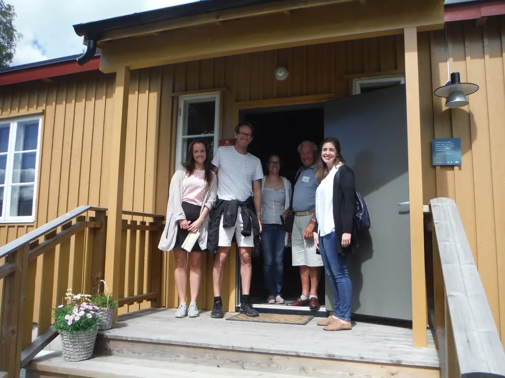 Smilende publikum på trappa til Grinimuseet sommeren 2017. Foto: Anne Gustafson/MiA