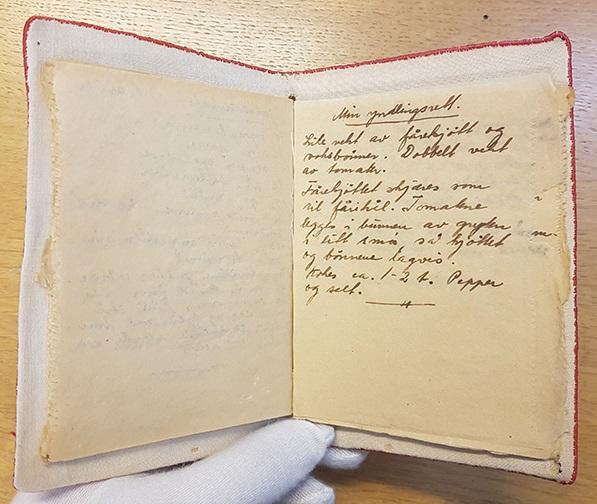 Nå er vi i gang med å registrere gjenstander fra Grinimuseet, og skattene lar ikke vente på seg. «Griniprat om god mat» er en slik skatt. Her har fangene samlet matoppskrifter, men det er ikke maten de fikk/spiste på Grini, det er maten de drømte om å spise igjen. Her finner vi en rekke desserter, cocktails og kaker, men også middagsmat.