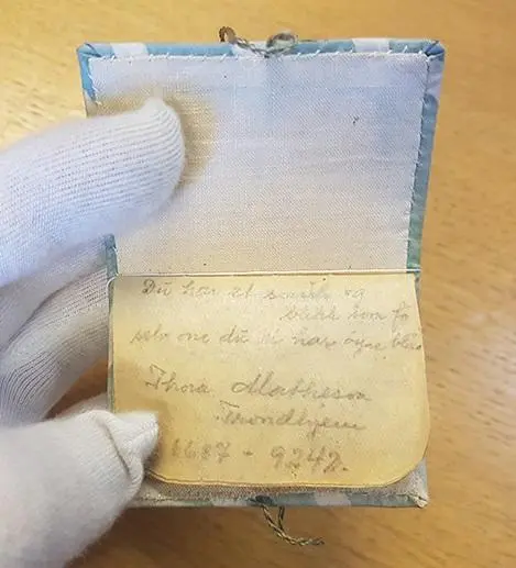 «Du har et smil og blikk som få, selv om du ei har øyne blå» står det på den første siden av denne bittelille minneboka. Vi fortsetter å registrere gjenstander fra Grinimuseet, og finner stadig flere skatter. Minnebøkene varierer veldig i størrelse og utforming, men har en del felles trekk. De inneholder som oftest fangenumre og navn fra medfanger, men også deres adresser, rørende hilsener, tegninger og små dikt. Sidene i disse minnebøker er ofte lagd av dopapir. Kvinnene hadde tilgang til systue og brukte stoffrester derfra til å lage små pynte- og minnegjenstander, broderitrådene dro de ofte ut av sine egne klær. Mennene hadde tilgang til et bokbinderi og deres minnebøker bærer preg av det.