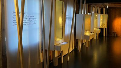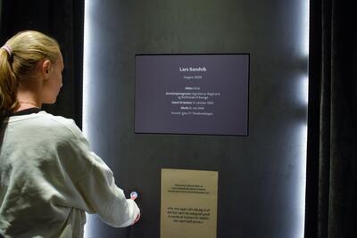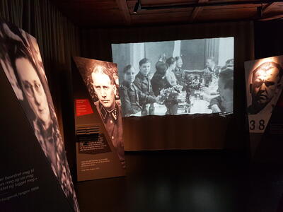 Historien til Grini fangeleir finnes i veggene på den originale brakka, og det første du møter når du kommer inn på Grinimuseet er en to meter høy og ni meter bred film av vandrende grinifanger rett på veggen.