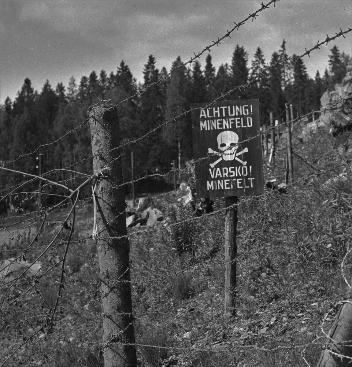 Under filmen, helt nede ved gulvet, er en tidslinje over historien til Grini fangeleir.