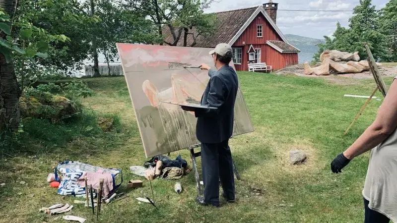 Kunstnergruppen -& Co vil stå oppstilt og male nær Holmsbu kunstmuseum, i tradisjon med hvordan Holmsbukunstnerne en gang bedrev sine gylne somre i det fri. Malerne vil på sin sedvanlige måte ta seg an et hvert motiv som tårner opp fremfor dem, alltid med like stor iver og konsentrasjon, og med det ene målet for øyet og lage så gode bilder som mulig.