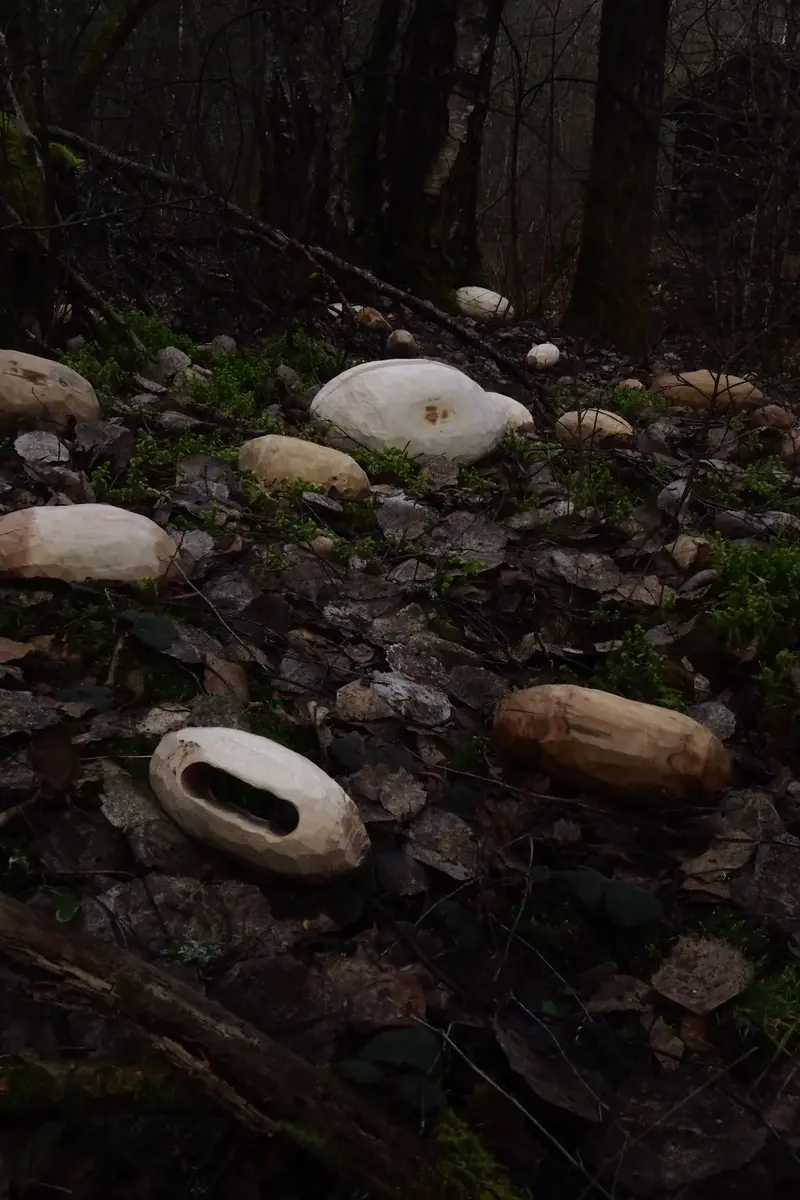I en tid som er preget av kriser, krig, uro, sinne og flukt kan det virke passivt å jobbe sakte med installasjoner i skogen. Jeg er enig, det er passivt, samtidig ikke ubetydelig. Noen må stake ut en ny kurs og bevege seg sakte i en annen retning.