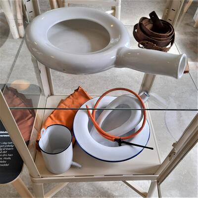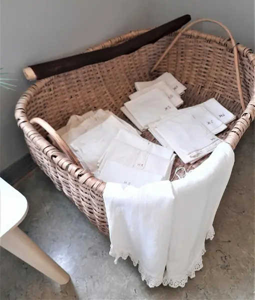 Bærekurv med pasienttøy og sengetøy fra Hurdal gamle og sykehjem - 2/4