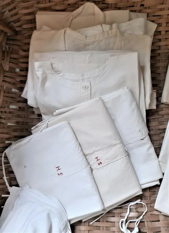 Bærekurv med pasienttøy og sengetøy fra Hurdal gamle og sykehjem - 2/4