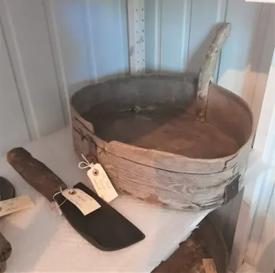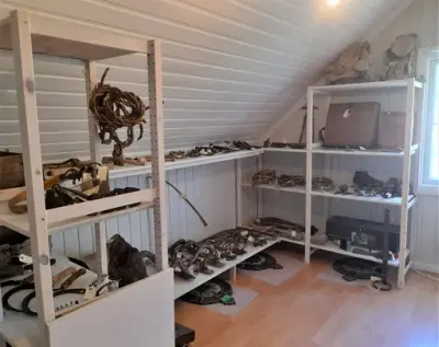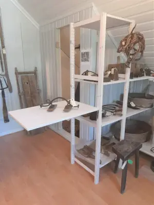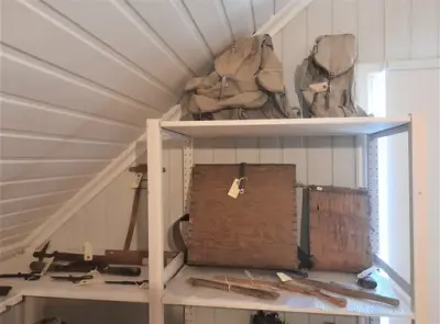 I dette magasinet finner du gjenstander som har vært brukt utendørs til arbeid i jordbruket og med husdyr, på vinterføre og i tur og mark. Du finner også stikkvåpen og et bjørneskinn med en dramatisk historie.