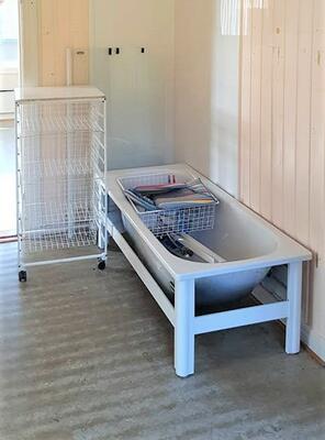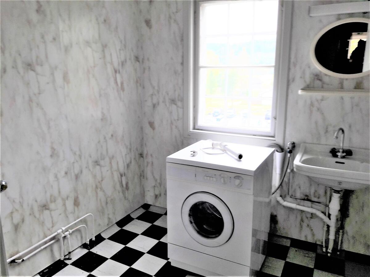 I 2. etasje var det et vaskerom med en vaskemaskin. Vi ønsket oss et nytt kontor og med nytt gulvbelegg og veggkledning ble det riktig så fint.