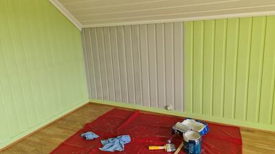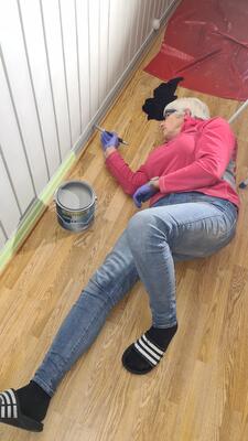 Det ble utarbeidet en fargeplan for malingsarbeidet inne i Doktorboligen. Tre- og murvegger i hele huset er malt. Et kjempestort arbeid for dugnadsgjengen.