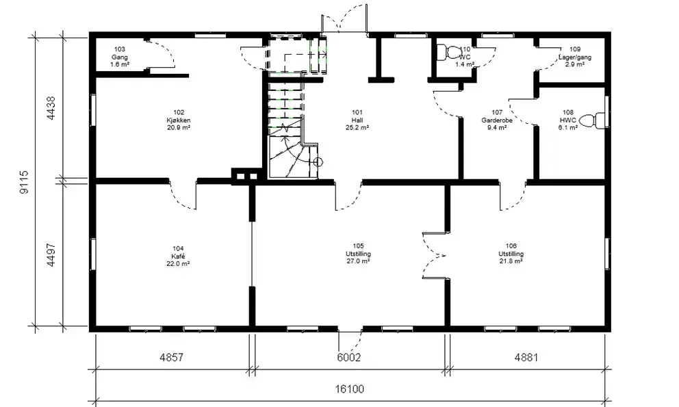 Vi har tatt bort den gamle rømningsklia som var beregnet på å evakuere småbarn, da Doktorboligen var i bruk som barnehage. Nå vil Doktorboligen få besøk av både ban og voksne, og det kreves en rømningstrapp.