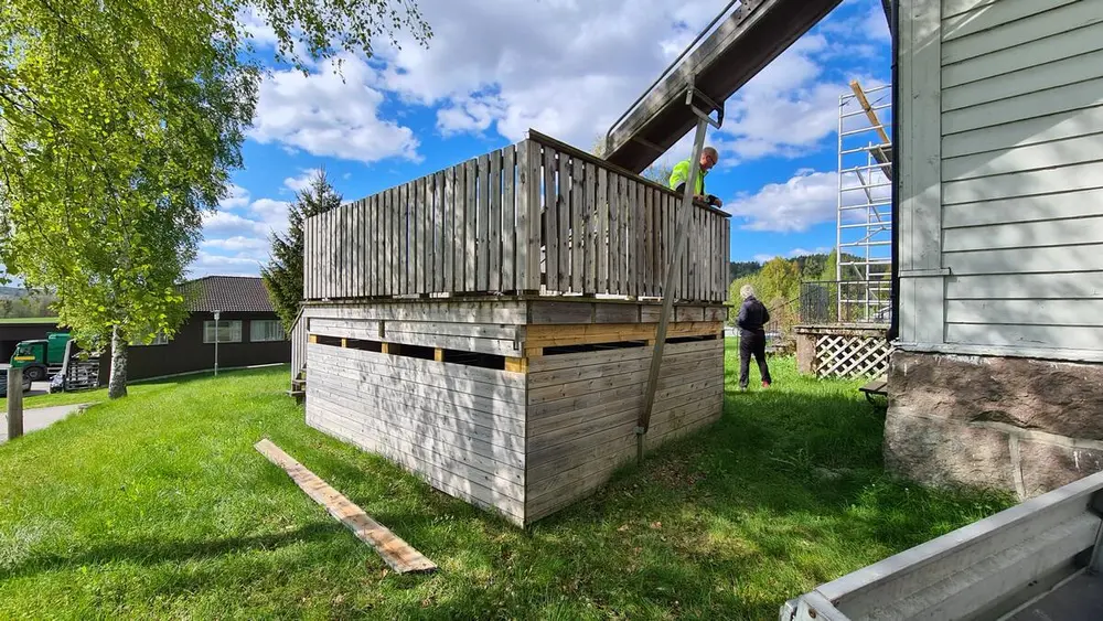 Fjerning av rømningsklie og oppsetting av ny rømningstrapp