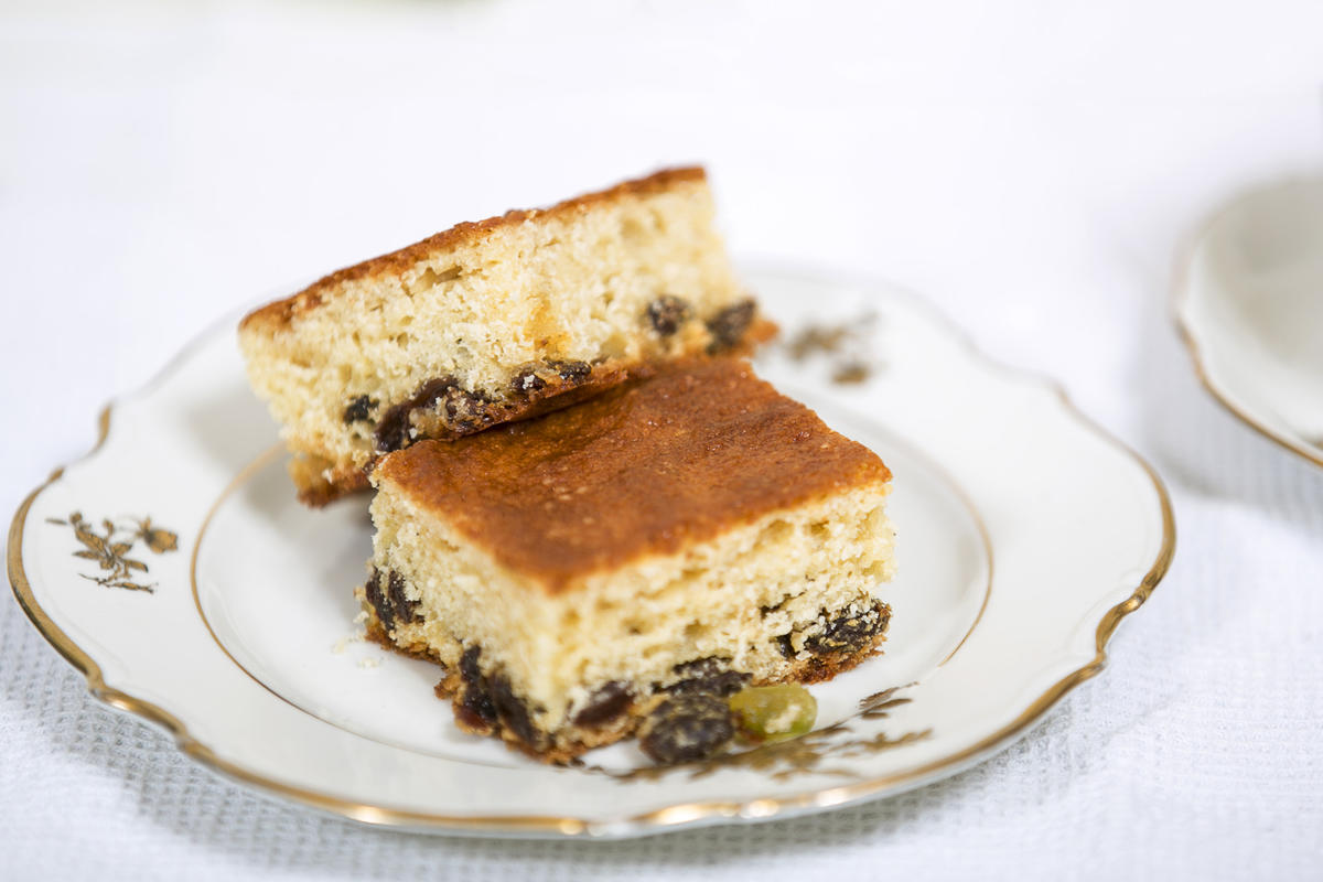 Hvis rosinene bløtlegges en halvtime før bruk, blir kaken saftigere.