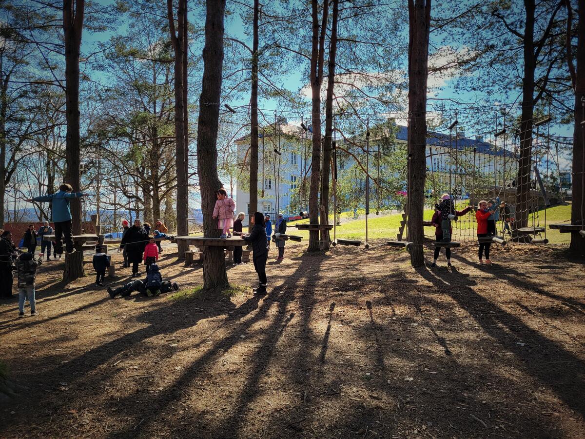 I furulunden øst for hovedbygningen kan du besøke den populære aktivitetsparken vår. I hinderløypa får du testet balansen på ulike utfordringer for barn i ulike aldre, og om du tør kan du kaste deg ut i zipline!
