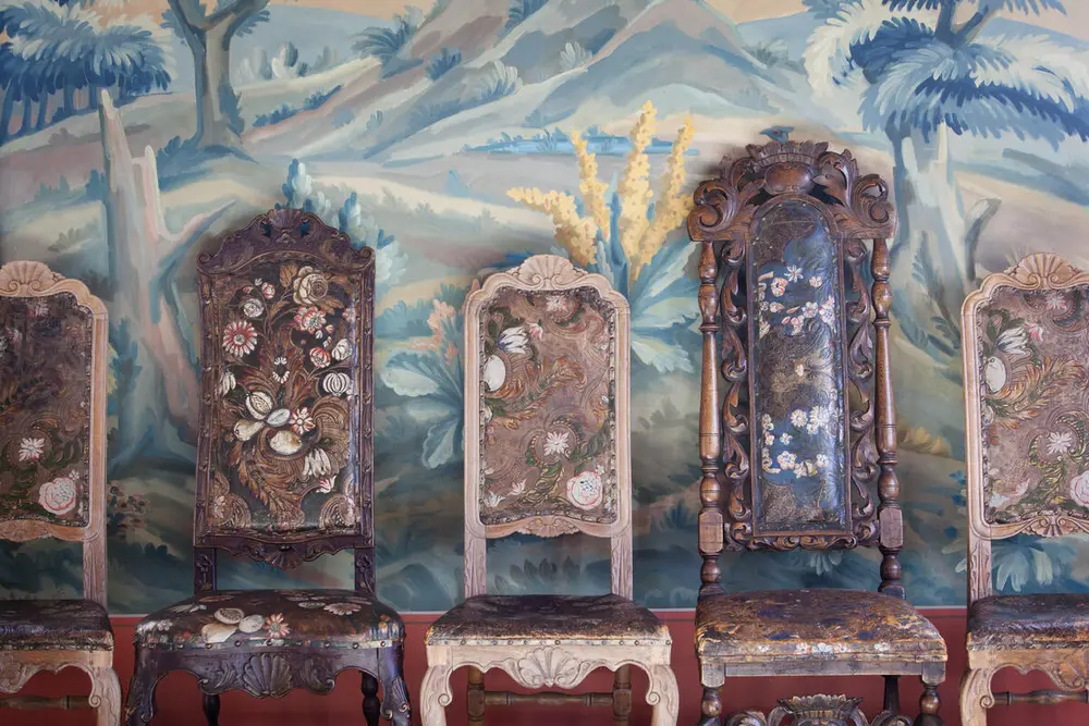 I hovedbygningen på gården kan du oppleve møbler, kunst og gjenstander som inngår i De Mathiesenske Samlinger.