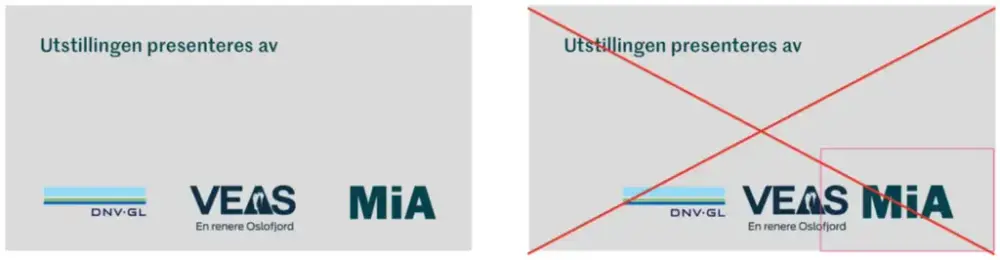- Eksempel C: Logoene ligger for nær hverandre og det beskyttede området er ikke ivaretatt