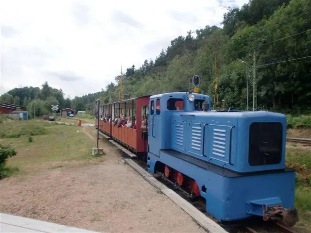 Bildet viser "Bison" med pasasjervogner under den første driftsdagen og Loket klarte alle de "bratte" bakkene med glans.
