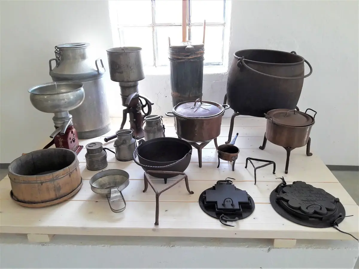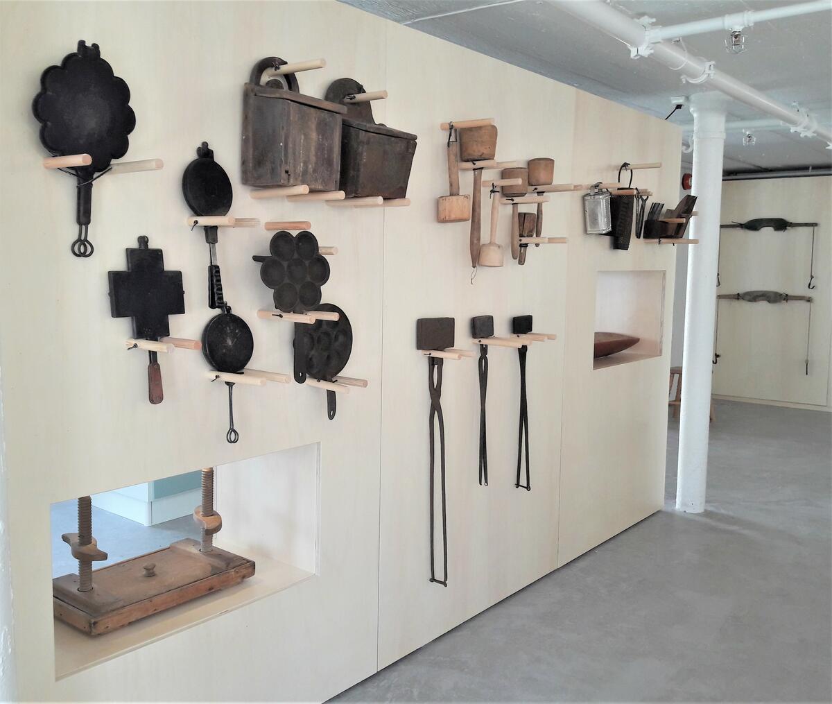 Et moderne kjøkken, bygget etter de samme prinsippene som man bygde kjøkken fra 1950-1970-tallet i Norge, formidler premissene for datidens hushold. En moderne vedfyrt komfyr, elektriske steketakker og induksjonsovn brukes for å formidle ulike koketeknikker. Et strømløst kjøleskap viser hvordan man kunne lagre mat kjølig året rundt ved hjelp av isblokker. Resten av lokalet er fylt opp med gjenstander fra museets samlinger som på ulike måter er knyttet til bearbeiding, tilberedning og servering av mat.