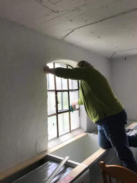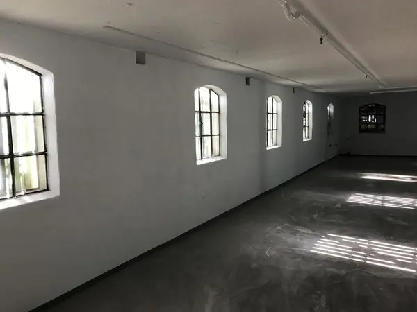 Det er lenge siden lokalene ble brukt til fjøsdrift, men noen spor er det fortsatt. Murveggene og de doble vinduene minner oss fortsatt på arbeidet som en gang ble lagt ned under det lave taket i det dunkle lyset.