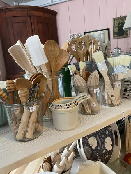 Museet har en liten landhandel som er åpen under arrangement og i forbindelse med kafedrift. Varene vi selger er nøye plukket ut, og høy grad av bærekraft er et av kriteriene. Her finner du et utvalg varer, som leker, norskproduserte papirprodukter, kjøkkenredskaper i metall og treverk, og interiørartikler.