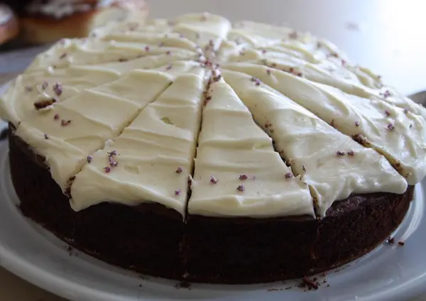 Rør til slutt inn finrevet rødbet og hell røren over i kakeformen. Stek kaken midt i ovnene i ca. 45-50 minutter, sjekk med en kakepinne. La kaka stå noen minutter i formen før du løfter den over på en kakerist.