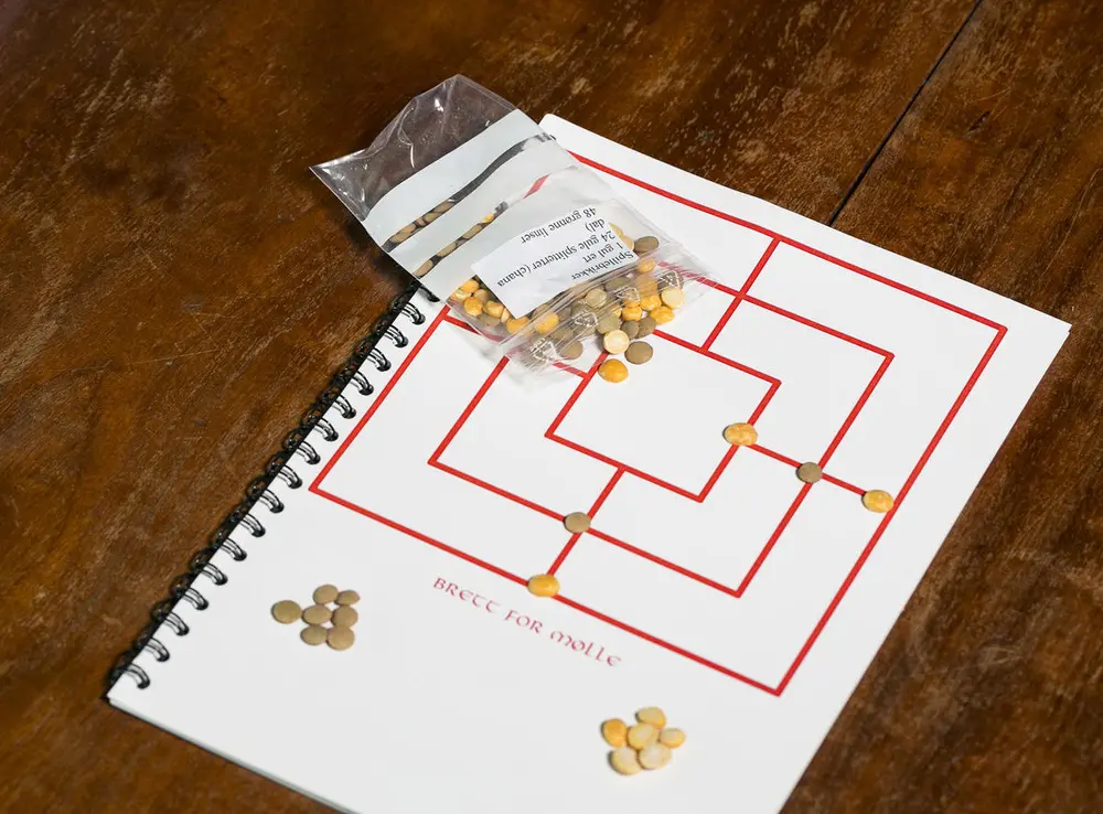 Tegn opp spillbrettet slik som på bildet. Heftet på bildet er laget av Arne Andersen fra MiA, som ofte er å treffe på Aurskog-Høland bygdetun. Flere kjenner han som viking under navnet Arne Juksemage? Foto: Øivind Møller Bakken/MiA