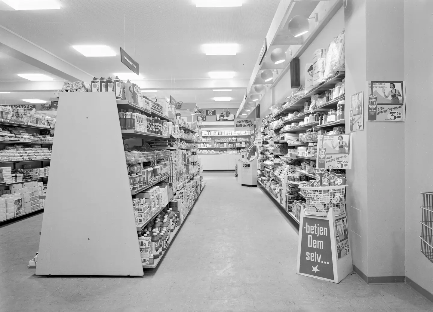 Reklame for varer i Asbjørn Olaussen Supermarked, den 28.04, 1965. Nasjonalbiblioteket.