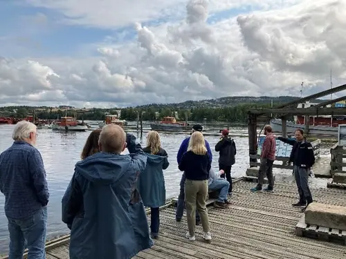 Konservator Thomas Støvind Berg på Fetsund lenser forteller om fløtingshistorien i Glomma og fløtingsanlegget på Fetsund som er et fredet kulturminne. Foto: Knut Fageraas, MiA.