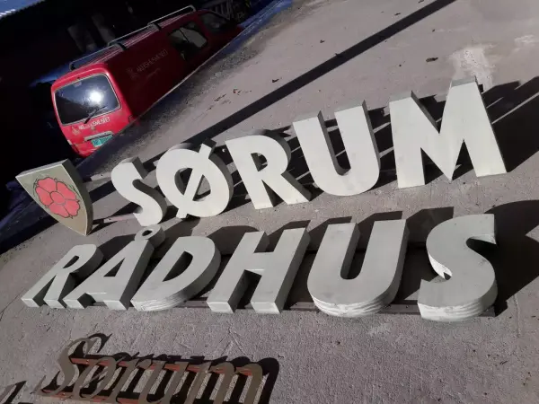 Rett før korona-nedstengningen 12. mars 2020 hentet vi skilt og flagg på nå nedlagte Sørum Rådhus. Sørum kommune er i dag slått sammen med Fet og Skedsmo til Lillestrøm kommune.