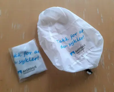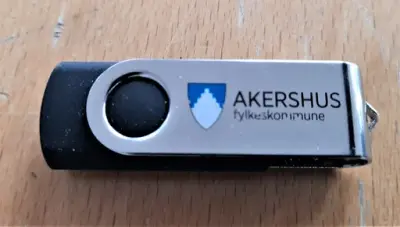 Gjenstandene fra daværende Akershus fylke: Stempler, vannflasker, krus, konvolutter/brevpapir, minnepinne, pins, sykkellykter, trekk til sykkelsete, refleksvest, t-shirts og en treningsjakke.