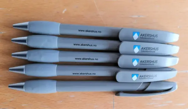 Fra fylkesadministrasjonen har vi fått flere smågjenstander med fylkesvåpen. Alle er i to eksemplarer: Kaffekrus, pins, konvolutter/brevpapir, vannflasker, penner og et stempel. Om hundre år er det ikke sikkert at man har fysiske eksemplarer og spesielt smågjenstandene vil være sjeldne. Det taktile er viktig i en historisk sammenheng. Hva er gjenstandene laget av og hvordan ser de ut?
