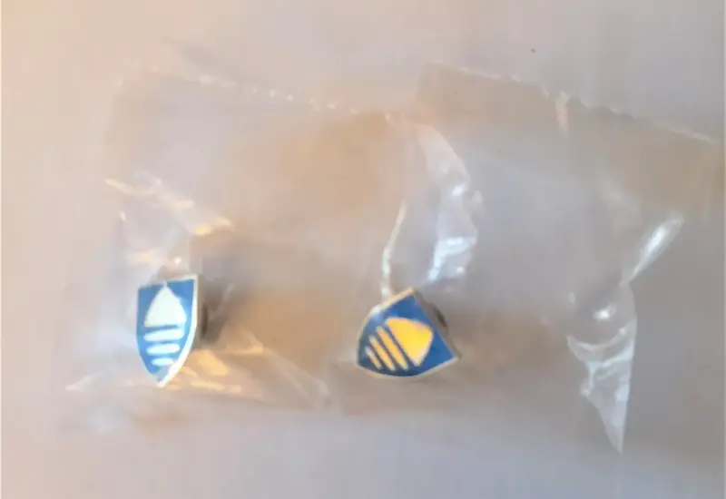 Flagg og klistermerker med kommunevåpenet til Aurskog-Høland kommune før kommunalreformen i 2020. Foto: MiA.