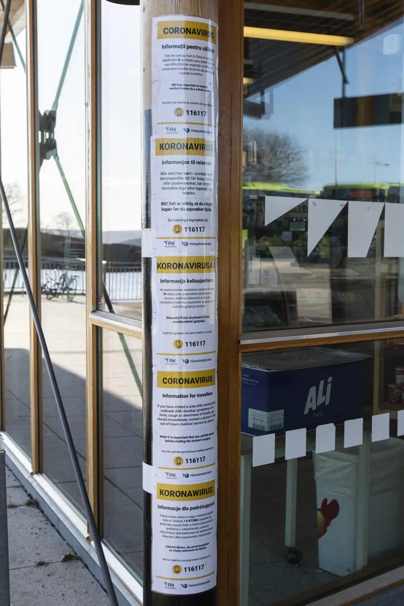 Koronaskilt ved Nesoddbåtene under nedstengningen