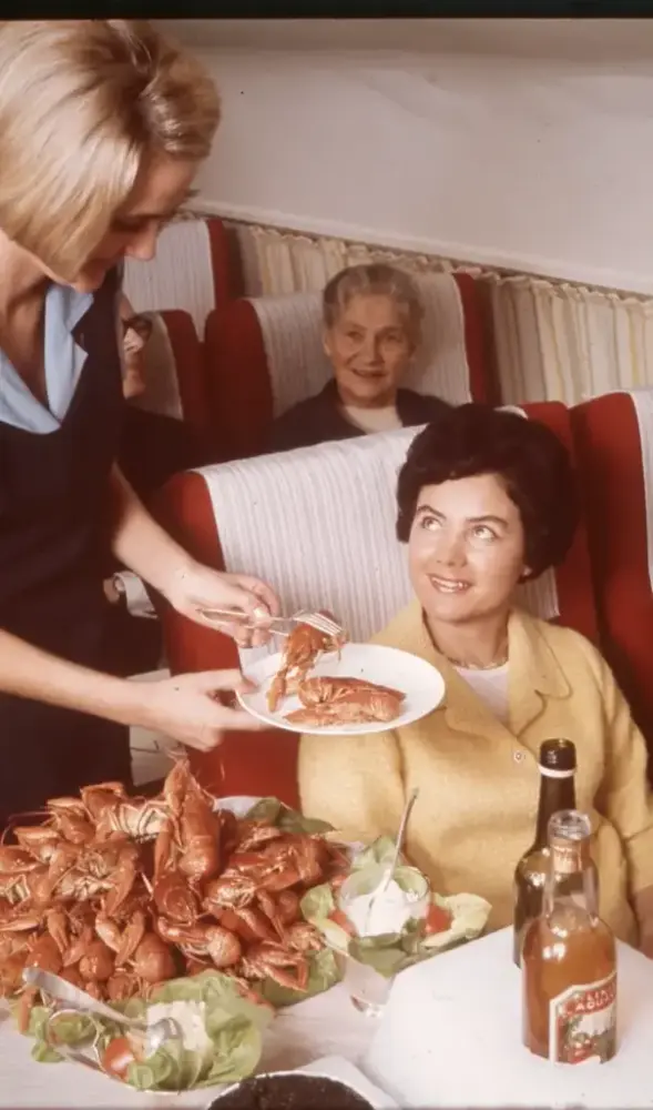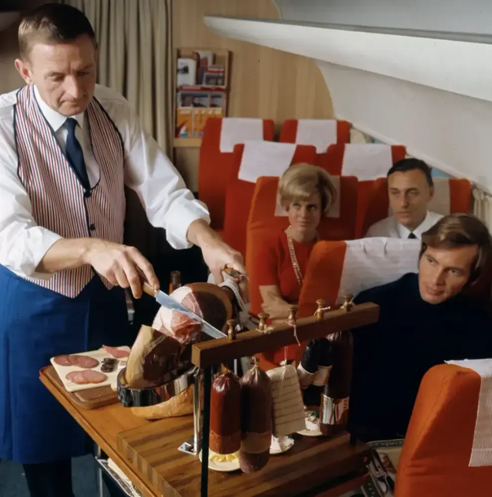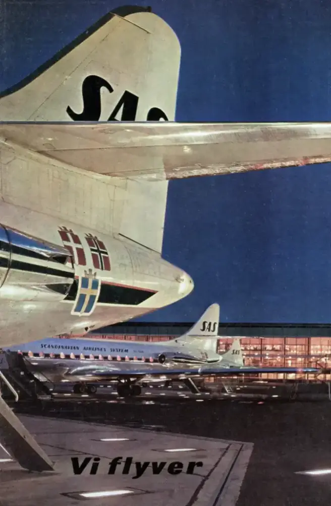 Flyhale på SAS-fly med dansk, norsk og svensk flagg. Brukt med tillatelse fra SAS Museet