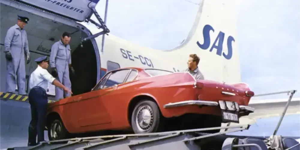 En bil fraktes med SAS fly. Brukt med tillatelse fra SAS Museet