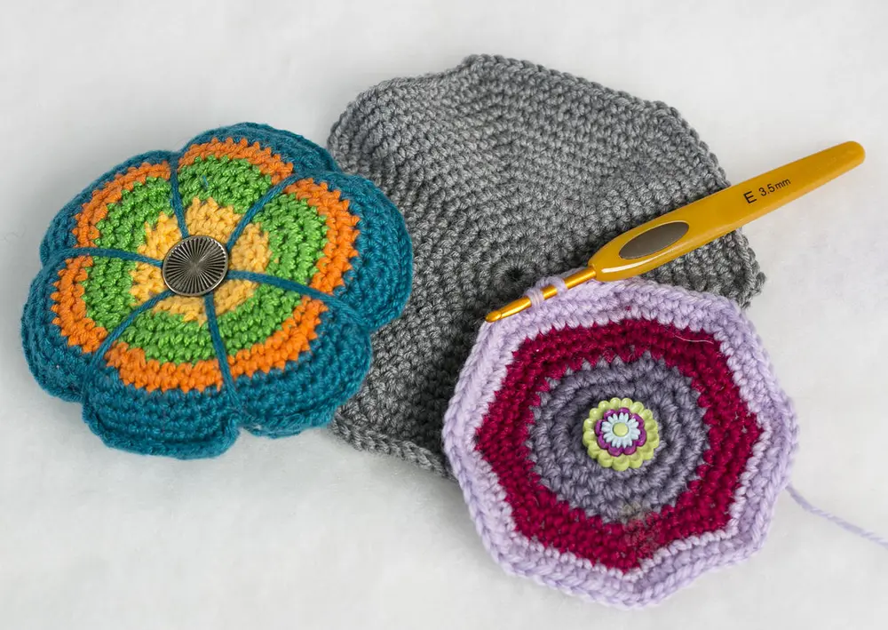 - Vi har heklet 16 omganger for å få denne størrelsen på nåleputen.