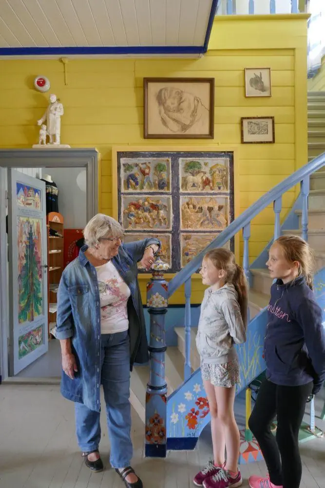 Elevene får også omvisning i den eldre rodeskolen for å se forskjellen mellom den og den rikt dekorerte Stein skole.