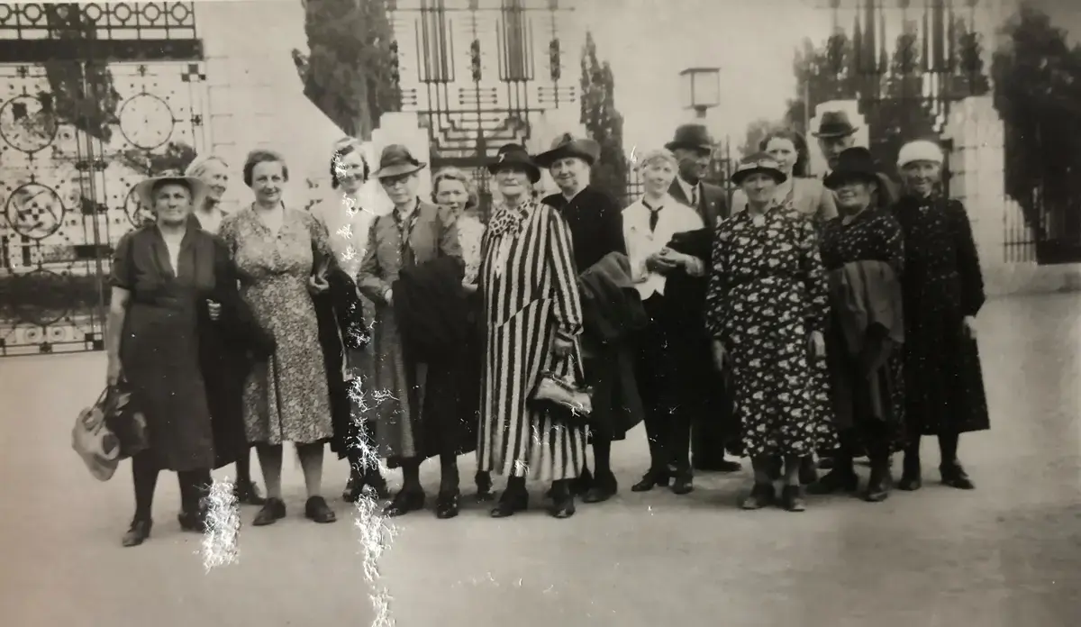 Opakermoens kvinneforening, også kalt badeforeningen, på tur til Frognerparken i Oslo. Fotoets eier er Kristin Fallet Andersen.