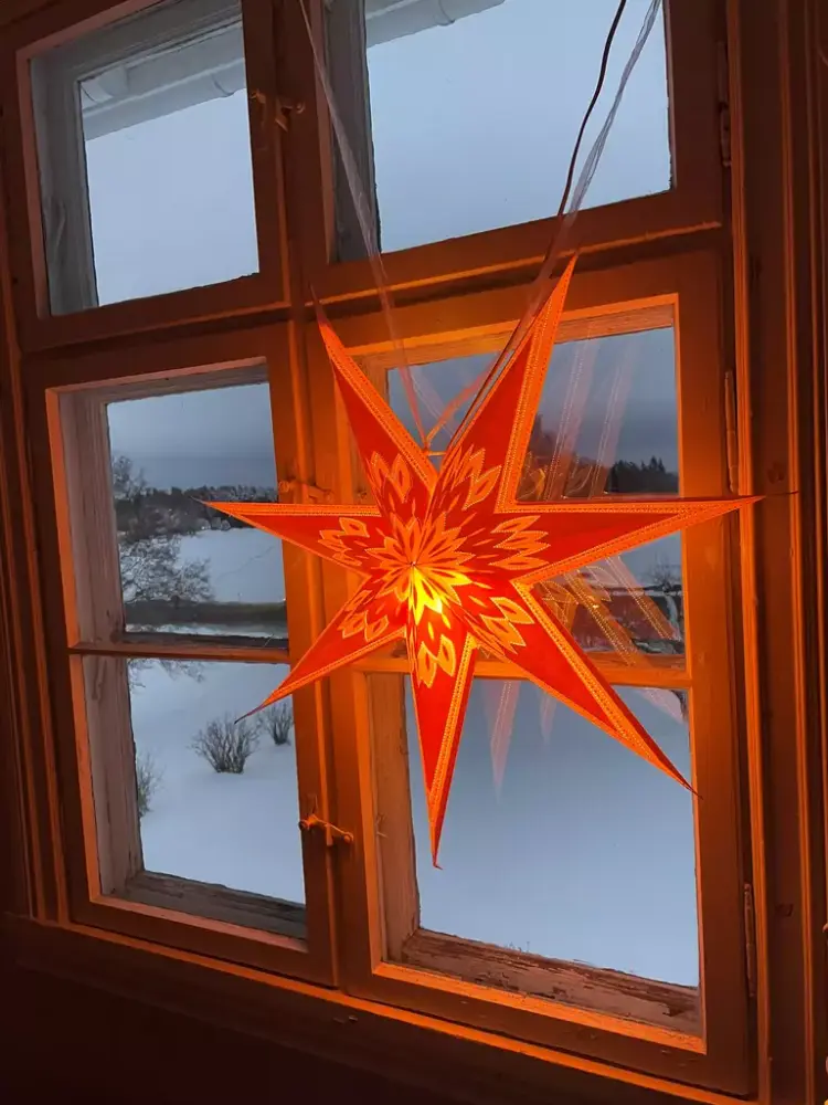 Julestjernen lyser i Stein skole i forbindelse med "Lys i gamle hus" 2023. Foto: MiA