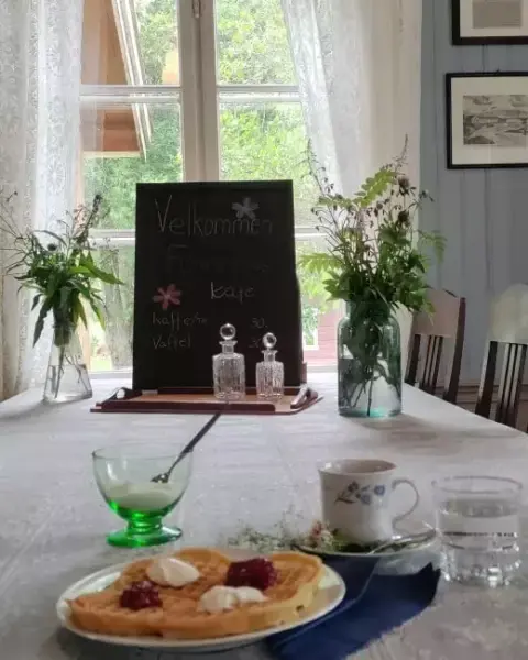 Museet serverte som vanlig kaffe og vafler i trivelige omgivelser i Øvre bruket. - 5/5