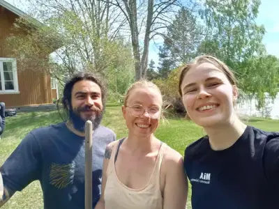 Museumsvert Maiken og stedsansvarlig Maren raker områder før sommeren, meg god hjelp av Grigoris. - 3/5