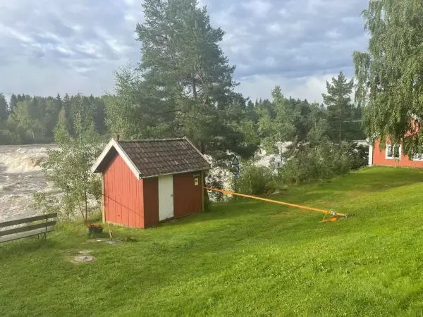 Elva når nesten opp til Nedre bruket under uværet "Hans". Foto: MiA