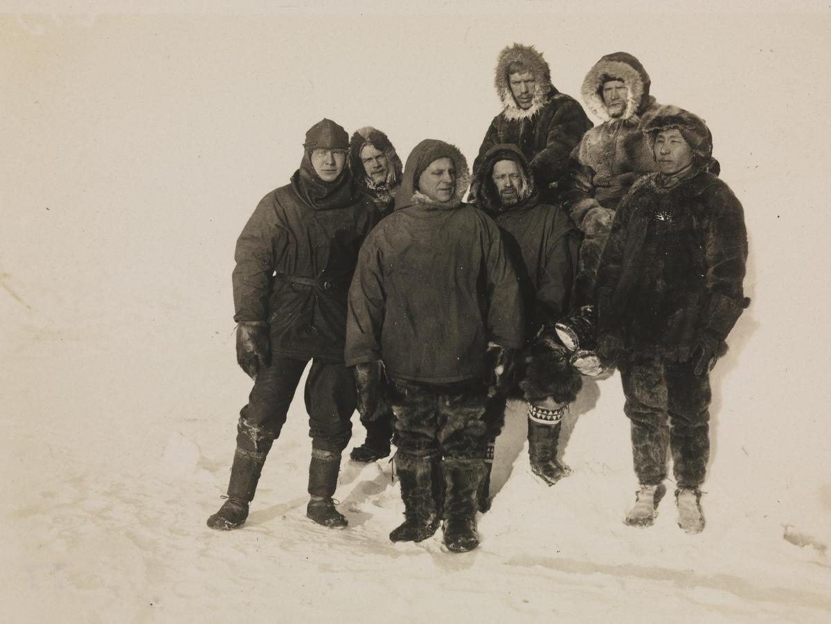 Bak os laa lange aar, vinternætter med maaneskin over opbrukne og fantastiske ismarker, med straalende, farvefuldt nordlysspil paa stjerneblank himmel, eller med storm og snefok, som pisket henover isen og hyllet alt i uigjennemtrængelig mørke, bak os laa somre med stadig dagslys, med graa og ensformige dage, med klam ishavsskodde uke efter uke, men kanske engang imellem med en solskinsdag, paa hvilken isen var klædt i de herligste, sarteste farver, rødt, blaat og violet, bak os laa en lang arbeidsdag, paa hvilken vi kanske hadde løst nogen av de opgaver, vi var sendt ut for å ta fat paa, - - - og bak os la kanske litt eventyr