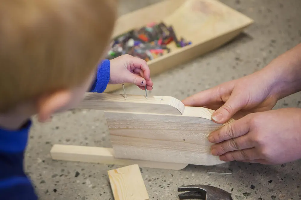 Museet er åpent og tegnebordet står klart. Du kan også lage strikkbåter. Barnebøker og leker ligger i kassen.