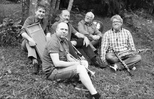 Kvintettbesetning består av klarinett/sax, trompet, banjo/gitar, tuba og kjøkkenavdelingen som består av - vaskebrett med tilbehør!