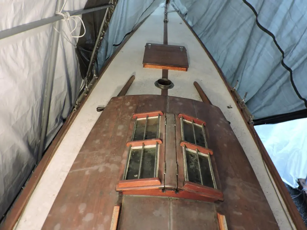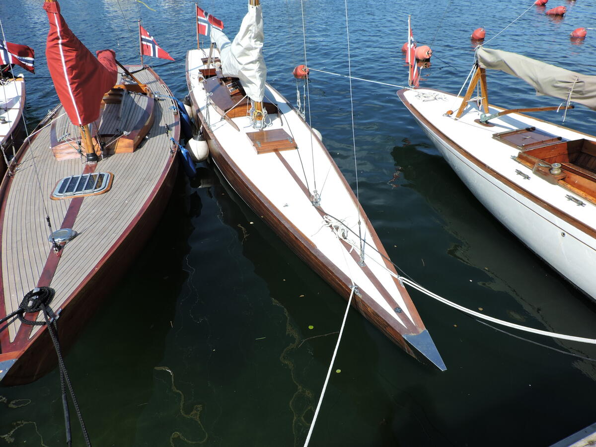 Utenfor Kystkultursenteret i Son, nærmere bestemt på tomta der "Sally III" ble bygget for 100 år siden, lå Sally under presenning før hun ble restaurert og seiler igjen på fjorden. . Foto: Terje Mathisen