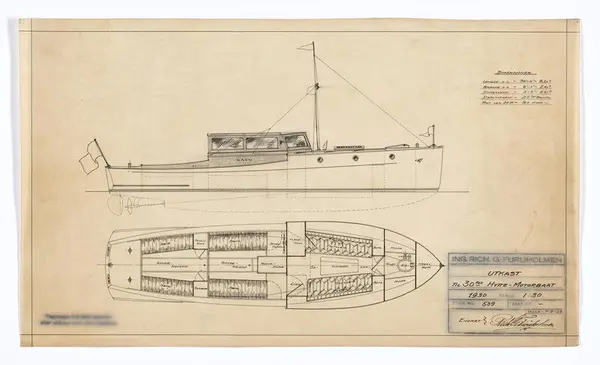Samling BåtsamlingOver 100 fritidsbåter Skipskonstruktør Otto L Scheens arkivArkivet inneholder over 1000 tegninger og skisser