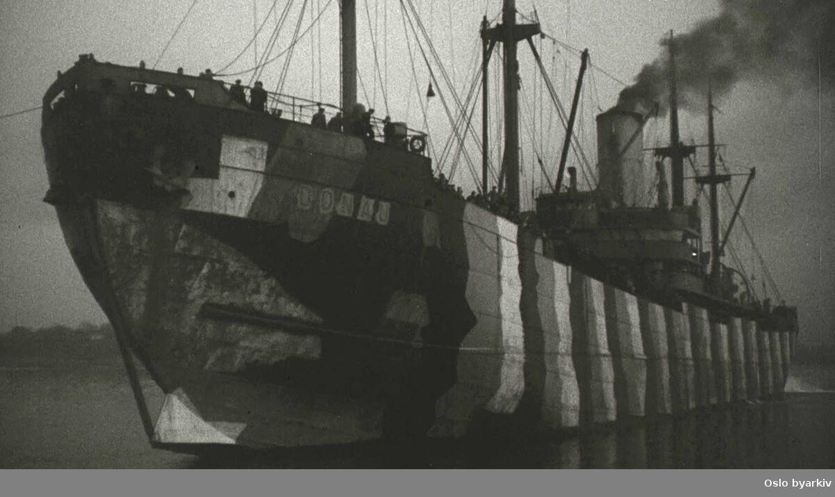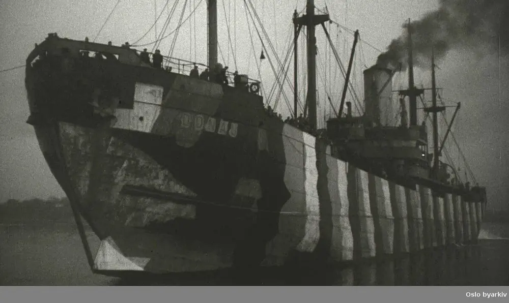 D/S Donau bringer norske sjøfolk som har vært internert i tyske leire vende hjem i 1941. Foto: Oslo Byarkiv