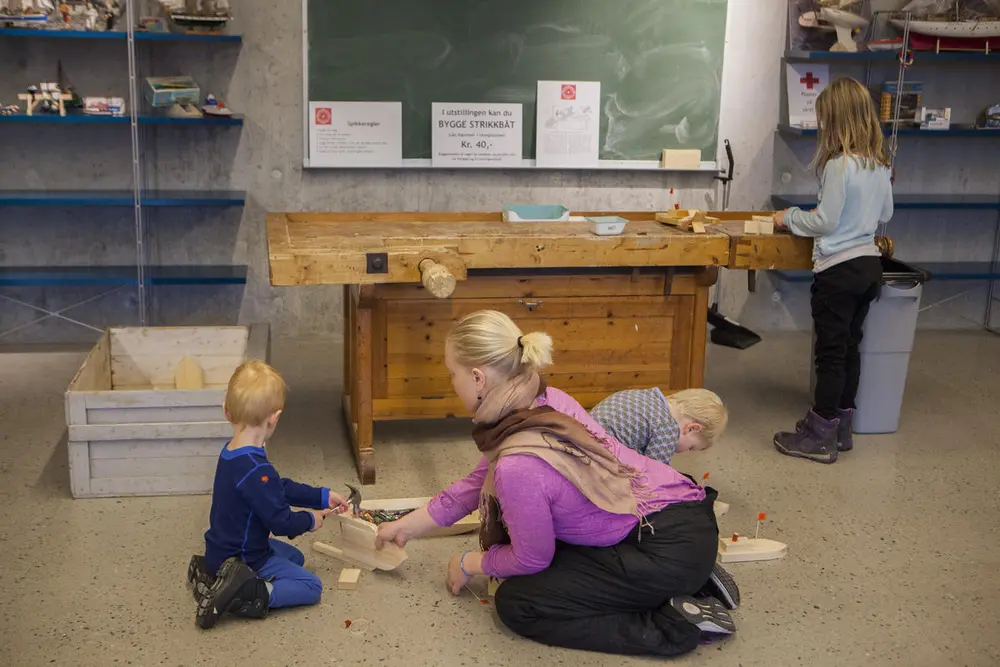 Strikkbåtene kan bygges i museets snekkerverksted (60,-).